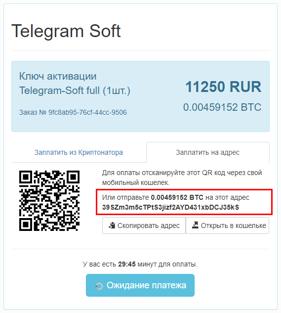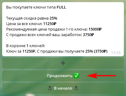 To'lovni amalga oshirgandan so'ng siz avtomatik ravishda, bir necha daqiqa ichida siz Telegram botida kalitni olasiz